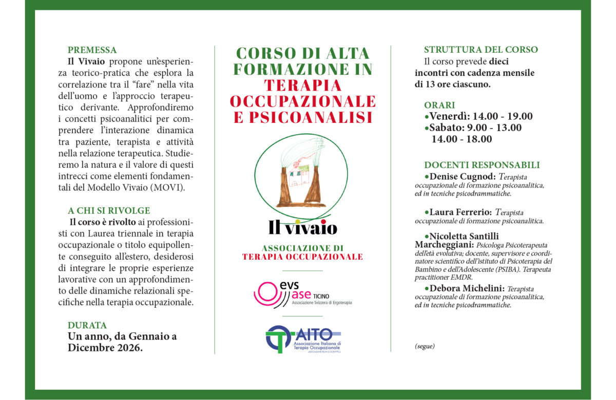 10 Ottobre 2025 10 Ottobre 2025Categories EventiCorso 2026 di Alta Formazione in Terapia Occupazionale e Psicoanalisi